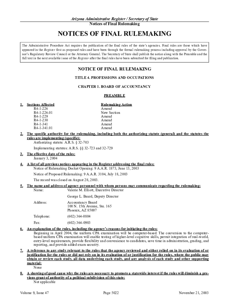Arizona Administrative Register / Secretary of State Notices of Final RulemakingNOTICES OF FINAL REMAKING The Administrative Procedure Act requires the publication of the final rules of the states