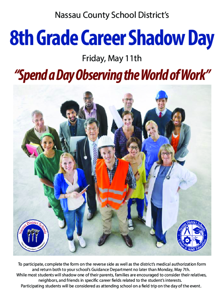 Nassau County School Districts8th Grade Career Shadow Day Friday, May 11thSpend a Day Observing the World of Worktop participate, complete the form on the reverse side as well as the districts medical