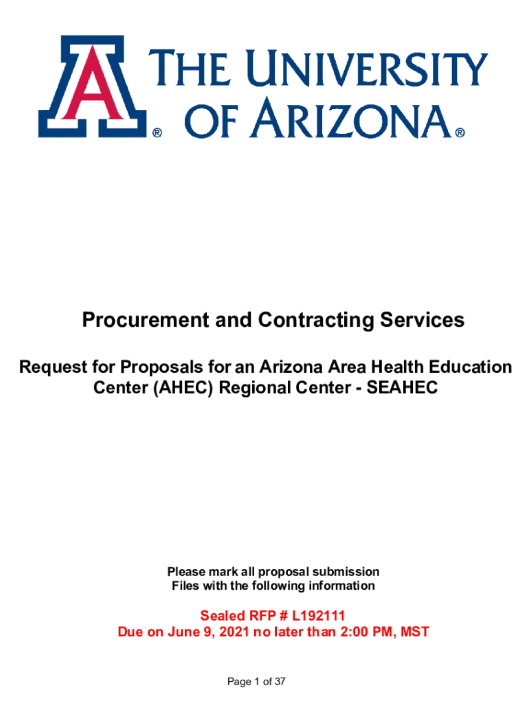Procurement and Contracting Services Request for Proposals for an Arizona Area Health Education Center (ALEC) Regional Center SEAHECPlease mark all proposal submission Files with the following informationSealed