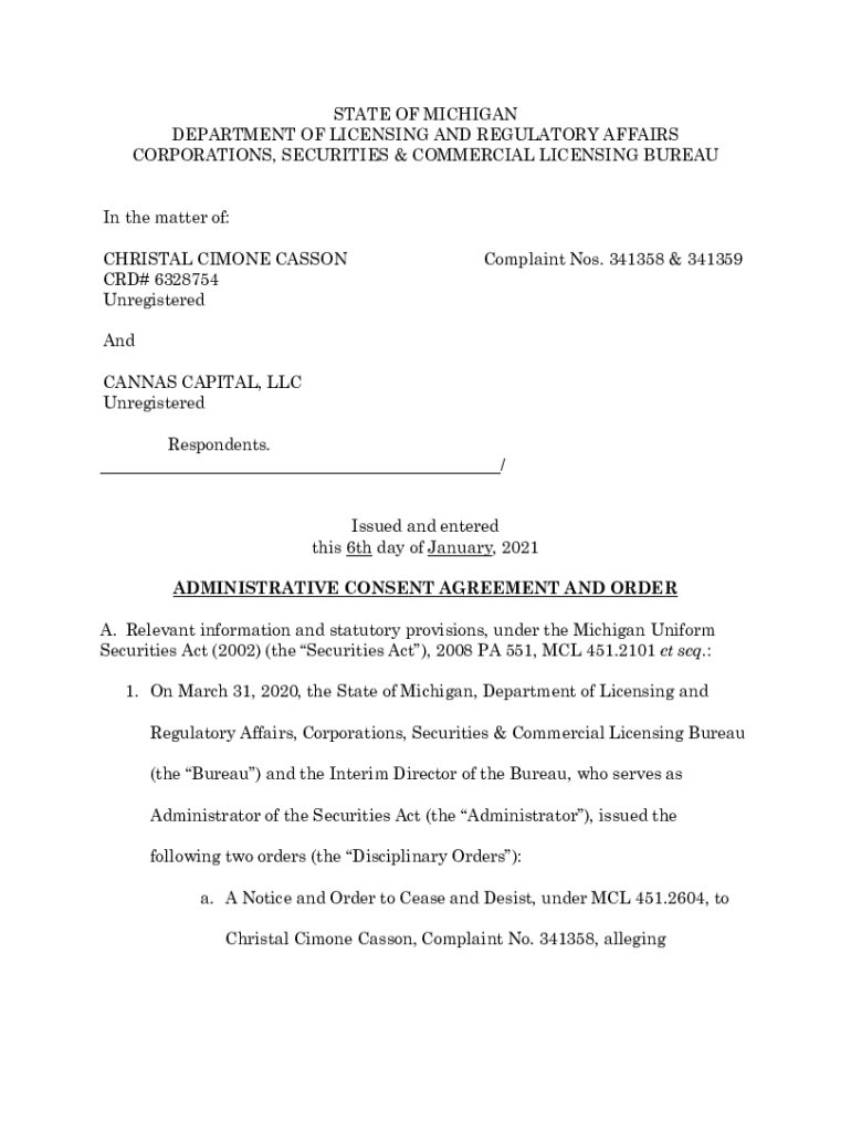 Get the free 341358 Christal Cimone Casson. Administrative Consent Agreement and Order