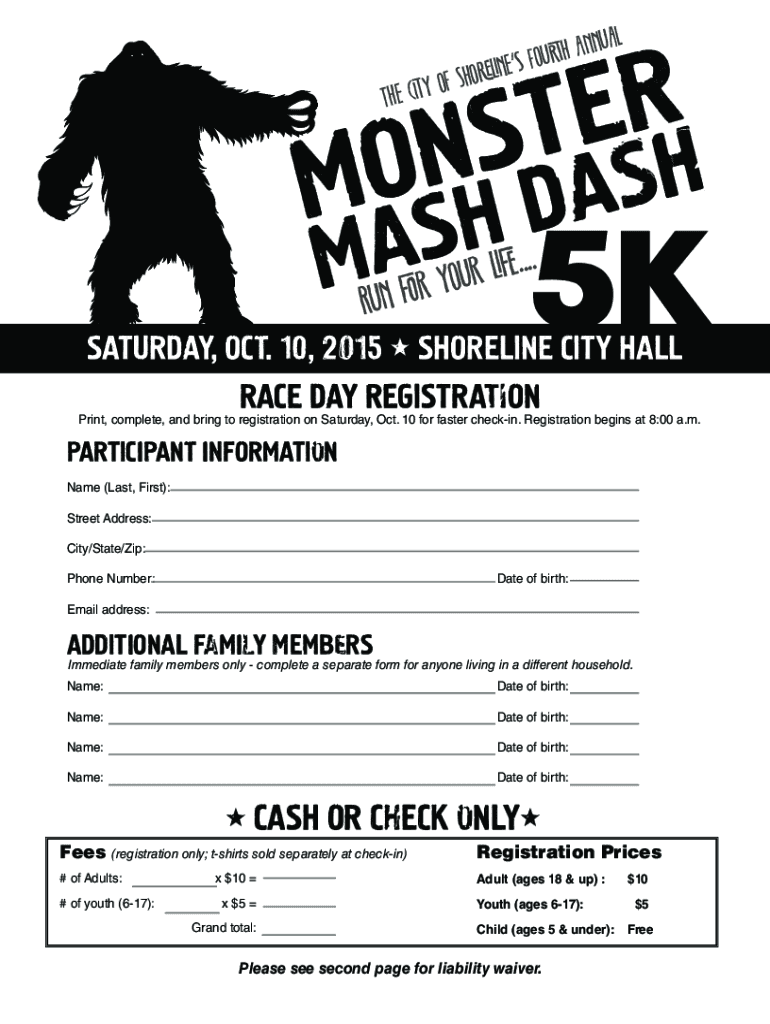 L an u in A h new Fourth E T S Nil re o h S f o y The Cit MOH S DAY S. A Fe LI r u M r yo Run fo5KSATURDAY, OCT. 10, 2015 SHORELINE CITY HALL RACE DAY REGISTRATIONPrint, complete, and bring to registration