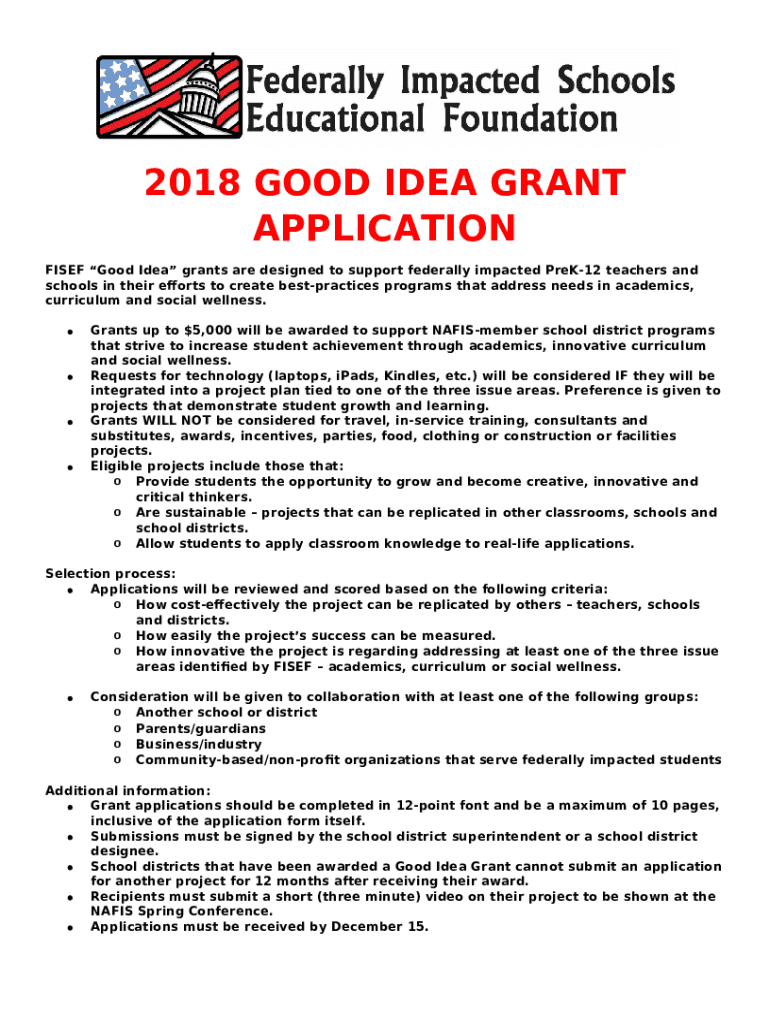 What is DOC 2018 GOOD IDEA GRANT APPLICATION FISEF Good Idea grants ... Form?