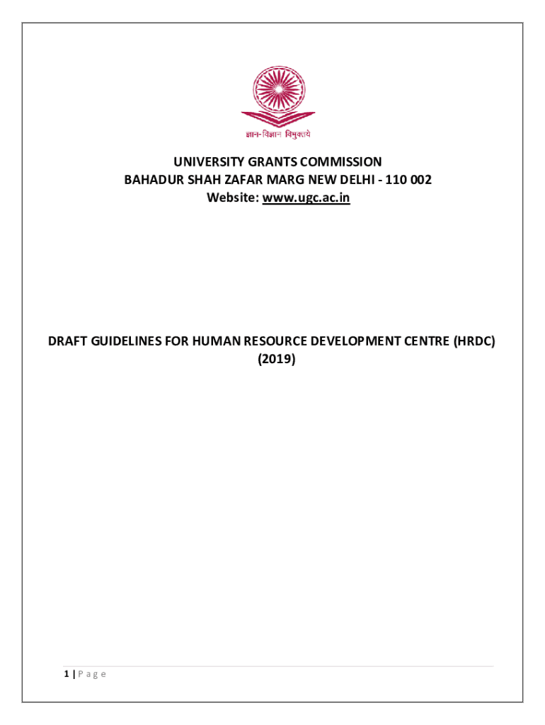 UNIVERSITY GRANTS COMMISSION BROADER SHAH AFAR MARY NEW DELHI 110 002 Website: www.ugc.ac.inDRAFT GUIDELINES FOR HUMAN RESOURCE DEVELOPMENT Center (HVDC) (2019)1 Page1. Introduction 2. Objectives