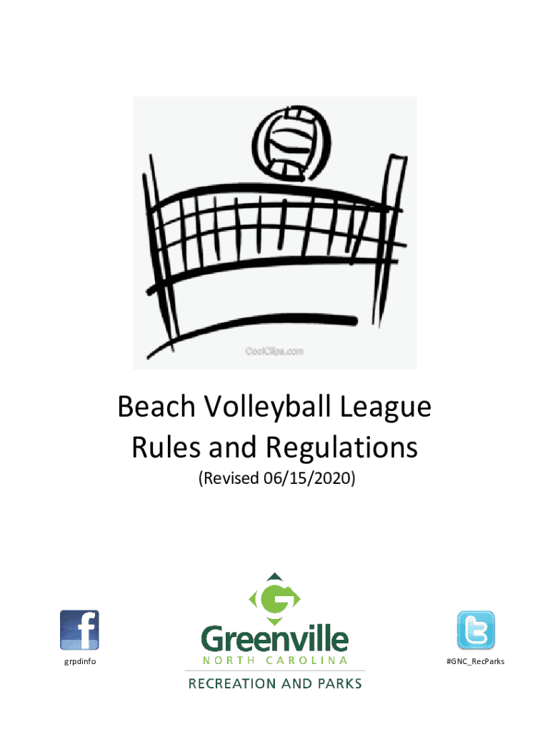 Beach Volleyball League Rules and Regulations (Revised 06/15/2020)grading#GNC_RecParksTable of Contents I. II. III. IV. V. VI. Registration Procedures.3 Managers Duties...3 Eligibility.