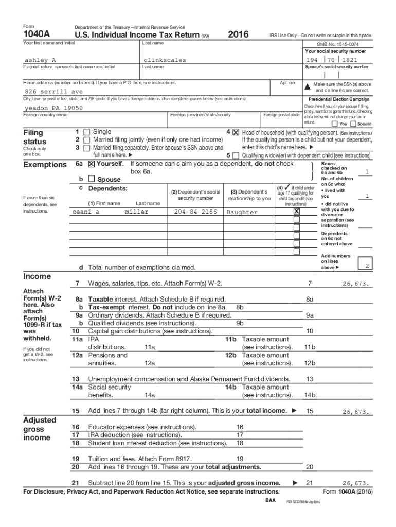 FormDepartment of the TreasuryInternal Revenue Service1040AU. S. Individual Income Tax Return (99)Your first name and initial2016IRS Use Only not write or staple in this space. Last nameable BOMB