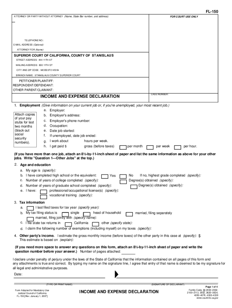 FL150 ATTORNEY OR PARTY WITHOUT ATTORNEY (Name, State Bar number, and address):FOR COURT USE OLYMPIC TO: Stanislaus County Child Support P.O. Box 4189 Modesto, CA 953524189TELEPHONE NO.: EMAIL ADDRESS