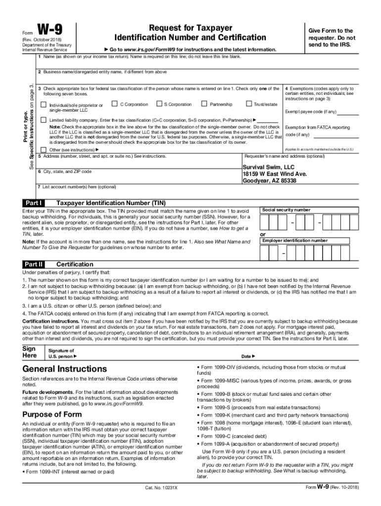 W9Form (Rev. October 2018) Department of the Treasury Internal Revenue ServiceRequest for Taxpayer Identification Number and Certification Give Form to the requester. Do not send to the IRS. Go to
