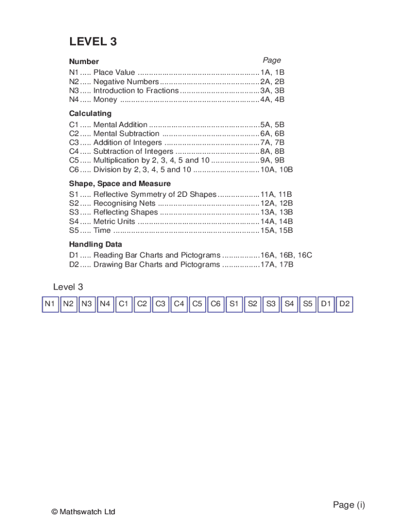 LEVEL 3 Page Number N1 ..... Place Value .......................................................1A, 1B N2 ..... Negative Numbers .............................................2A, 2B N3 ..... Introduction