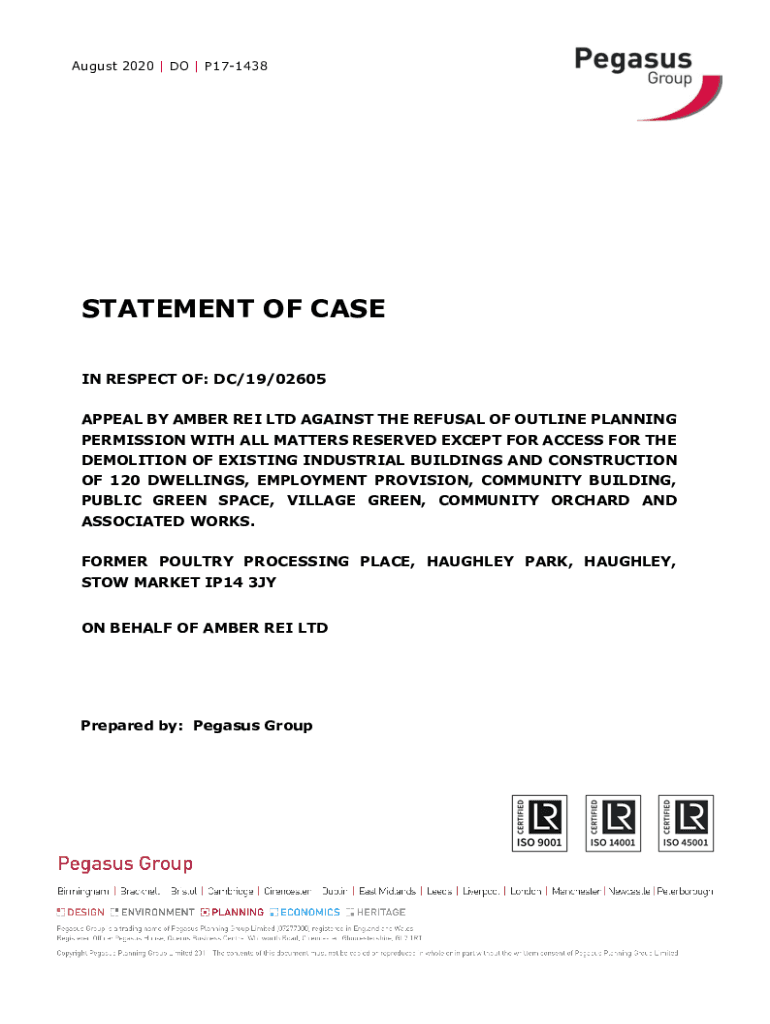 August 2020 DO P171438STATEMENT OF CASE IN RESPECT OF: DC/19/02605 APPEAL BY AMBER REI LTD AGAINST THE REFUSAL OF OUTLINE PLANNING PERMISSION WITH ALL MATTERS RESERVED EXCEPT FOR ACCESS FOR THE DEMOLITION