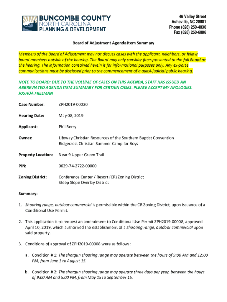 46 Valley Street Asheville, NC 28801 Phone (828) 2504830 Fax (828) 2506086 Board of Adjustment Agenda Item Summary Members of the Board of Adjustment may not discuss cases with the applicant, neighbors,
