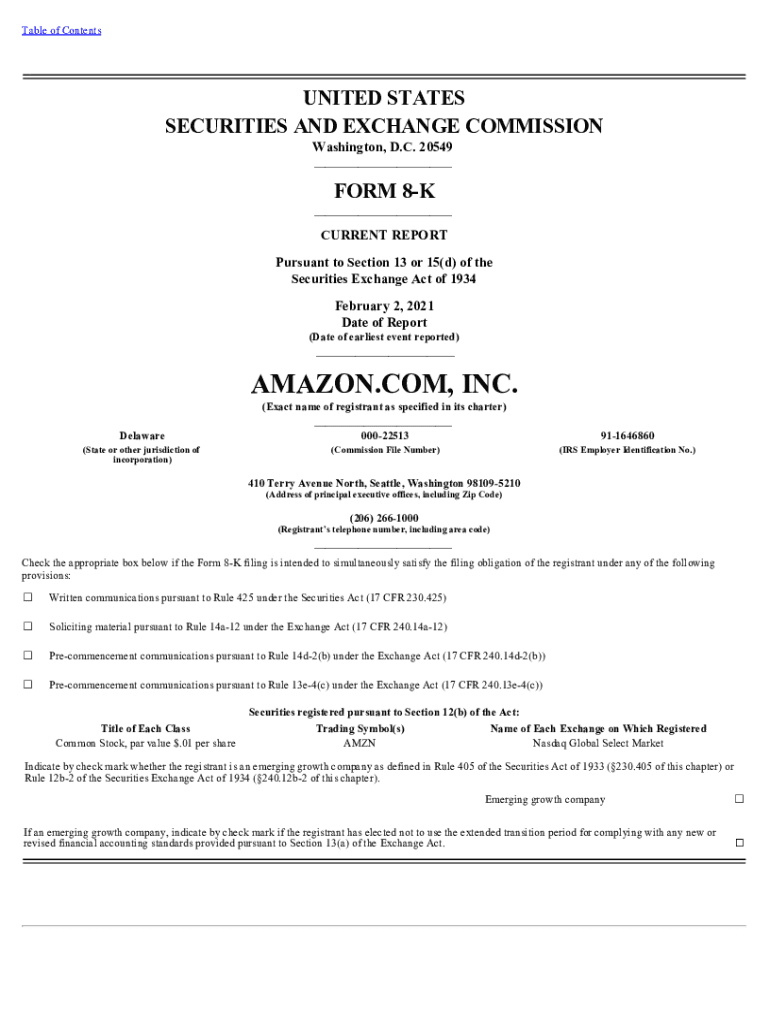 Table of ContentsUNITED STATES SECURITIES AND EXCHANGE COMMISSION Washington, D.C. 20549 FORM 8K CURRENT REPORT Pursuant to Section 13 or 15(d) of the Securities Exchange Act of 1934 February 2, 2021,