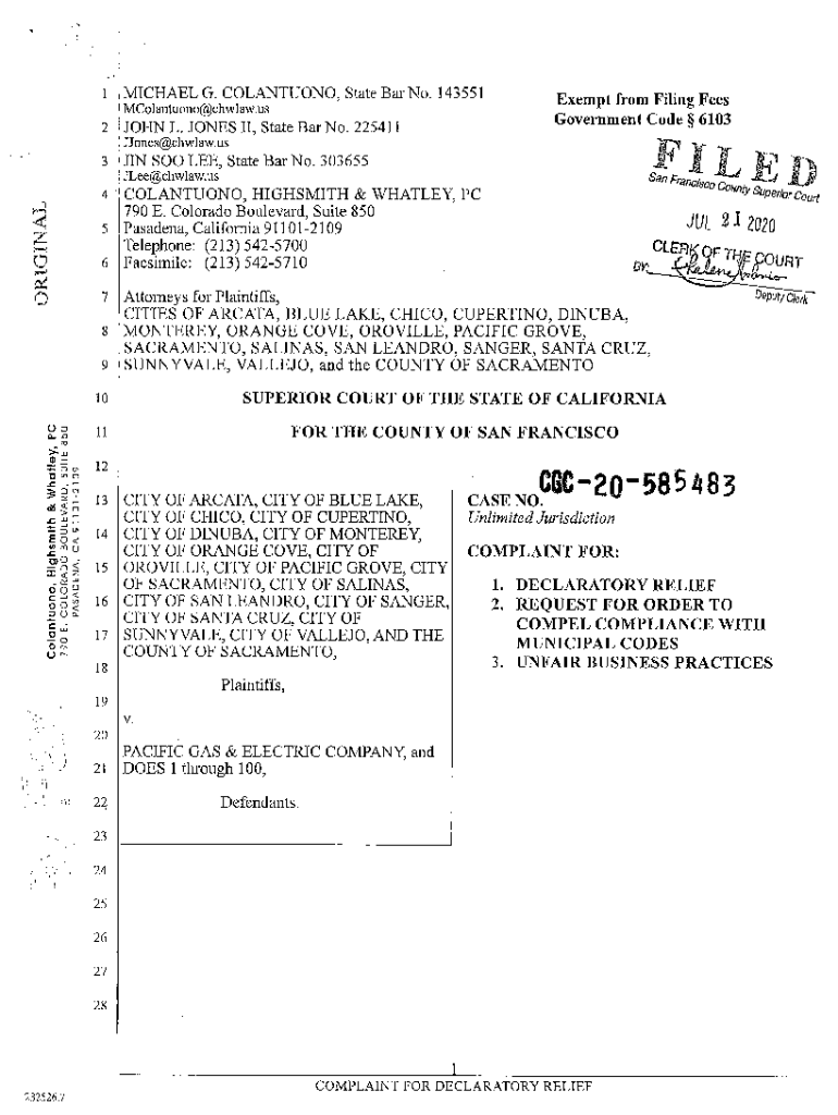 1MICHAEL G. COLANTUONO, State Bar No. 143551 MColantuono claw.us2JOHN L. JONES II, State Bar No. 2254113JIN SO LEE, State Bar No. 3036554COLANTUONO, HINDEMITH & WHITLEY, PC 790 E. Colorado Boulevard,