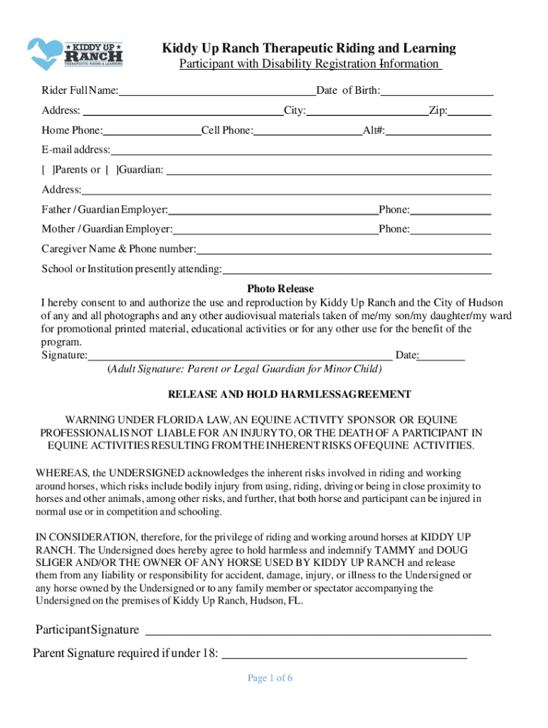 Get the free Kiddy Up Ranch Therapeutic Riding and Learning Participant ...