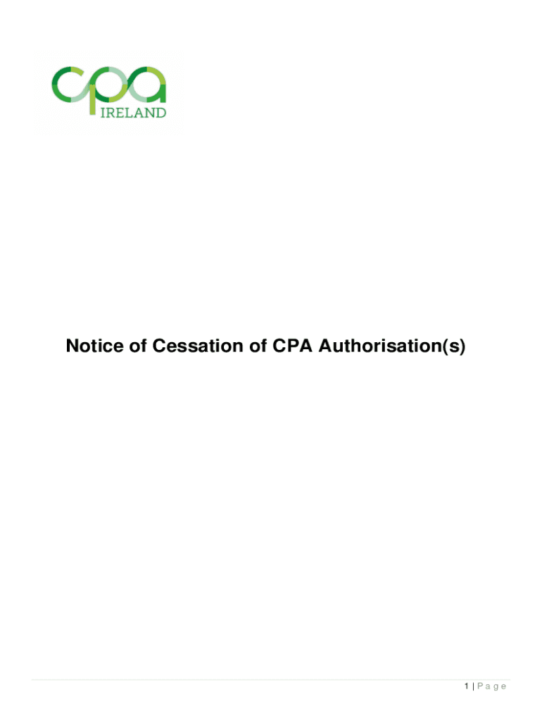 Get the free Notice of Cessation of CPA Authorisation(s)
