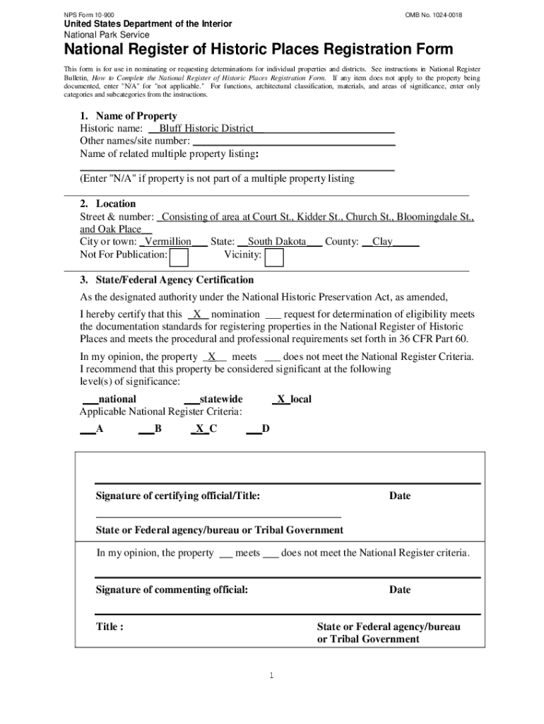 NPS Form 10900OMB No. 10240018United States Department of the Interior National Park ServiceNational Register of Historic Places Registration Form This form is for use in nominating or requesting