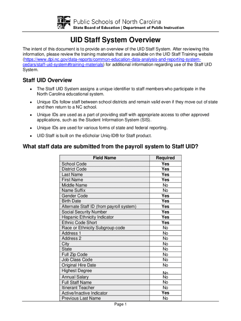 Get the free Unique Identifier for Staff (UID Staff) Overview - NC.gov