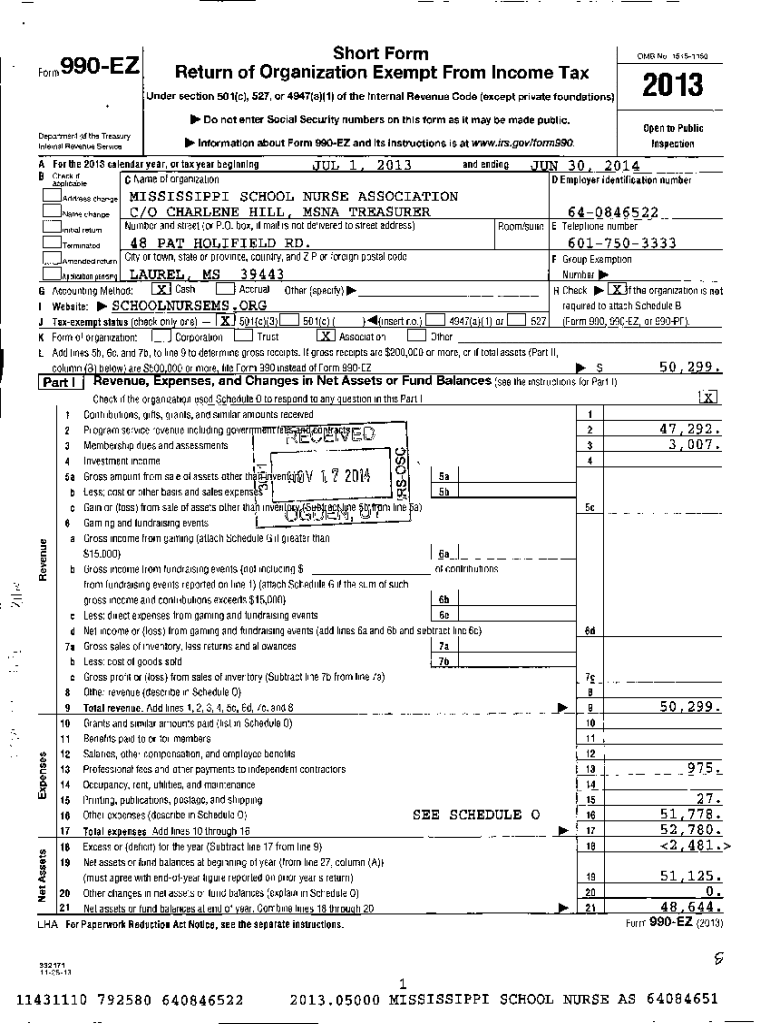 Form990 EZ Short Form Return of Organization Exempt From Income Tax OMB No2013Under section 501(c), 527, or 4947(a)(1) of the Internal Revenue Code (except private foundations) Do not enter Social