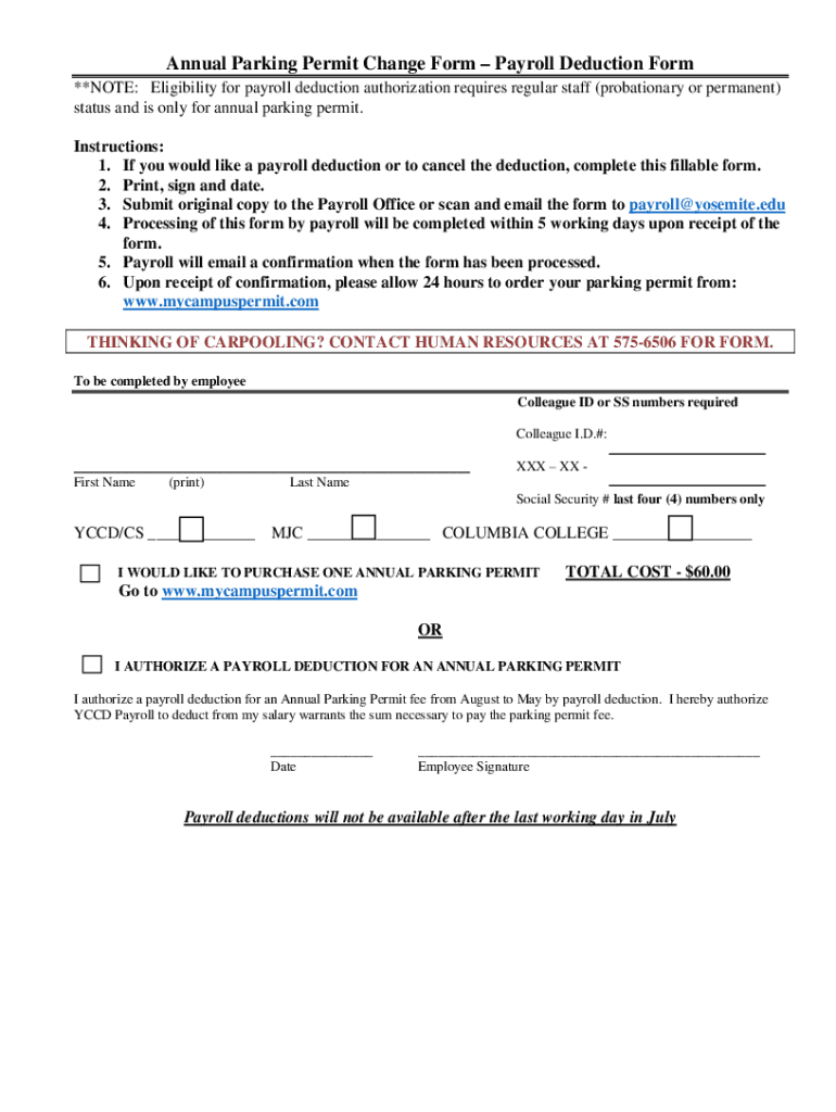 Get the free Annual Parking Permit Change FormPayroll Deduction Form