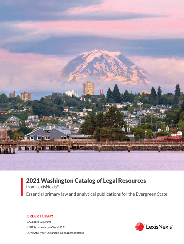 2021 Washington Catalog of Legal Resources from LexisNexis Essential primary law and analytical publications for the Evergreen Statewide TODAY! CALL 800.223.1940VISIT lexisnexis.com/Wash2021CONTACT
