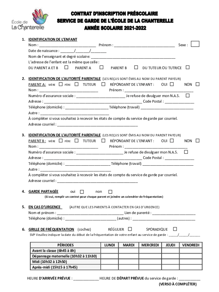 Get the free Fiche d'inscription Service de garde (statut rgulier ...