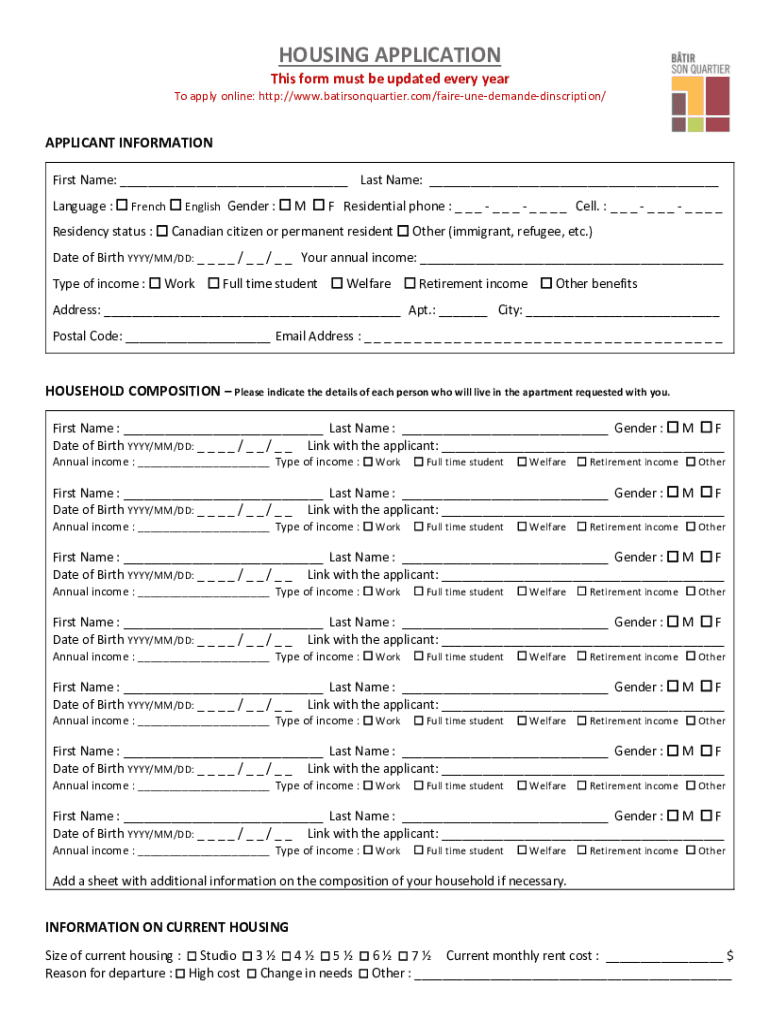 Get the free HOUSING APPLICATION - batirsonquartier.com