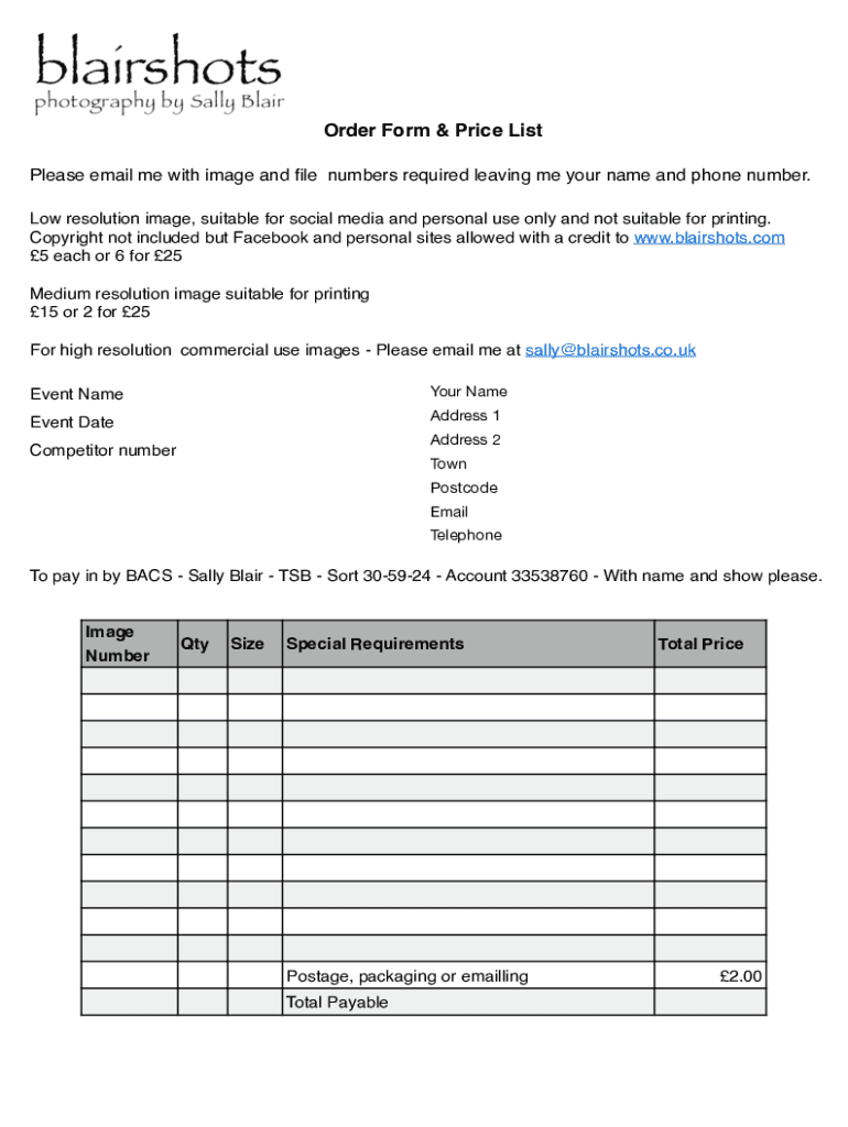 Get, Create, Make and Sign blairshots order form 0618