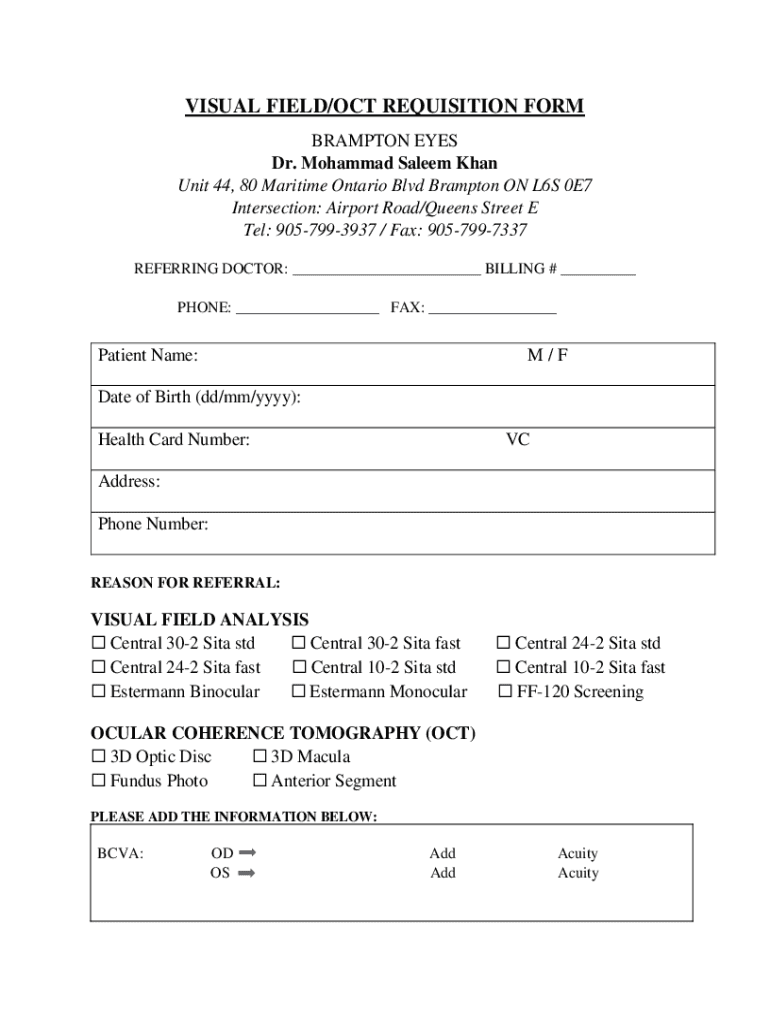 Get the free VISUAL FIELD/OCT REQUISITION FORM - Brampton Eyes