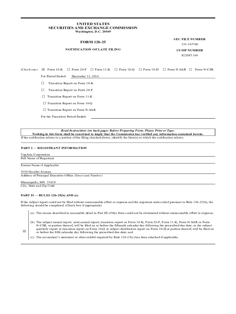 Get the free VapAria Corp (Form: NT 10-K, Received: 03/31/2015 12:23:19)