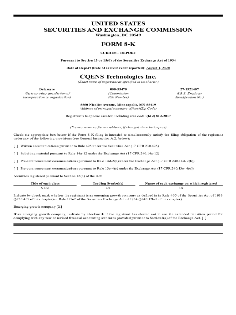 Get the free Date of Report (Date of earliest event reported): August 1, 2020