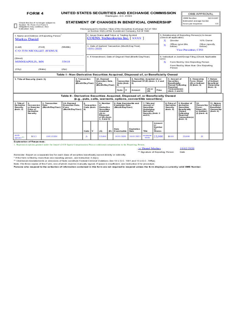 UNITED STATES SECURITIES AND EXCHANGE COMMISSIONER 4OMB Number:32350287Estimated average understatement OF CHANGES IN BENEFICIAL OWNERSHIPCheck this box if no longer subject to Section 16. Form 4