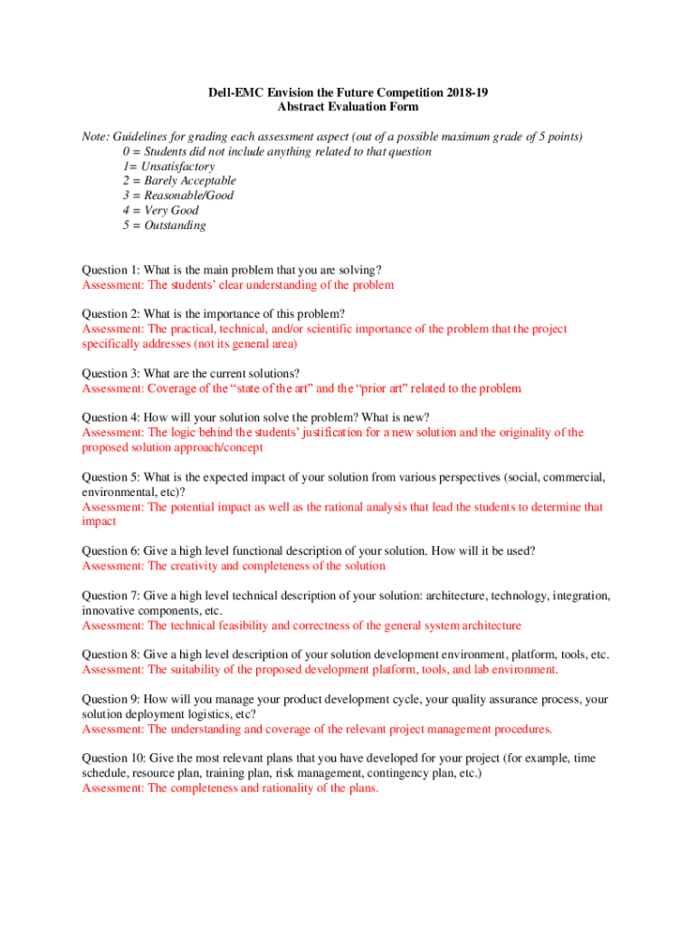 Dell EMC Envision the Future Competition 201819 Abstract Evaluation Form Note: Guidelines for grading each assessment aspect (out of a possible maximum grade of 5 points) 0 Students did not include