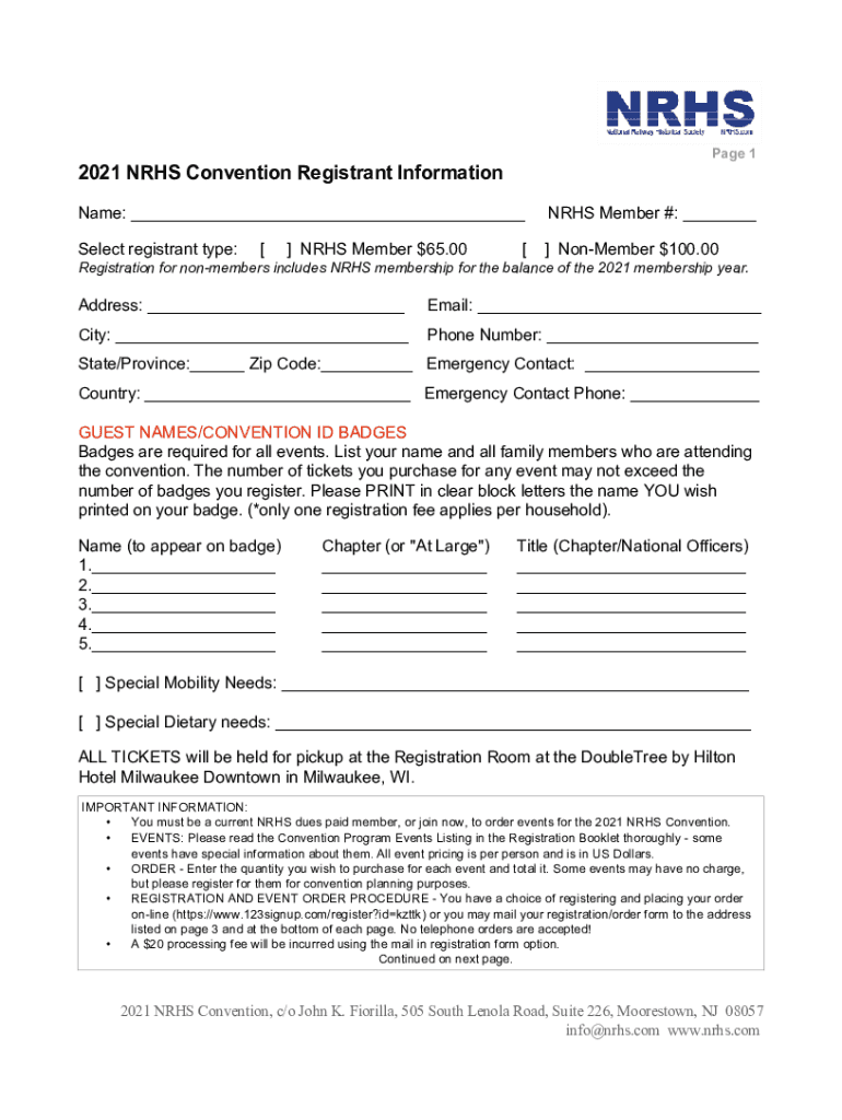Page 12021 NHS Convention Registrant Information Name: NHS Member #: Select registrant type: Nonmember $100.00 NHS Member $65.00 Registration for nonmembers includes NHS membership for the balance