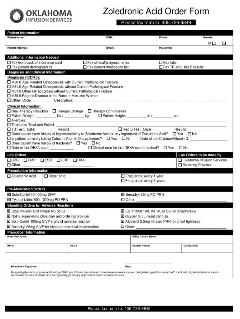 Acid Order Form Please fax form to: 4057269849 Patient Information Patient Name:DOB:Phone:Patient Address:Email:Insurance:Gender:Additional Information Needed Fax front/back of insurance card Fax