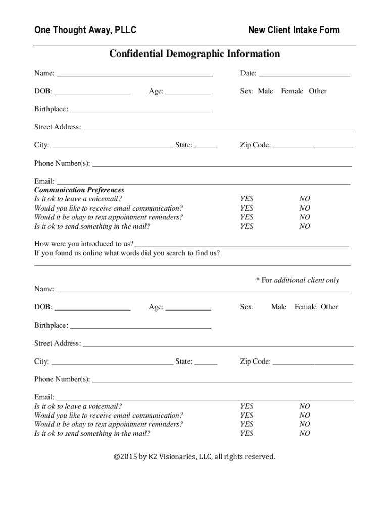 Get the free One Thought Away, PLLC New Client Intake Form Confidential ...