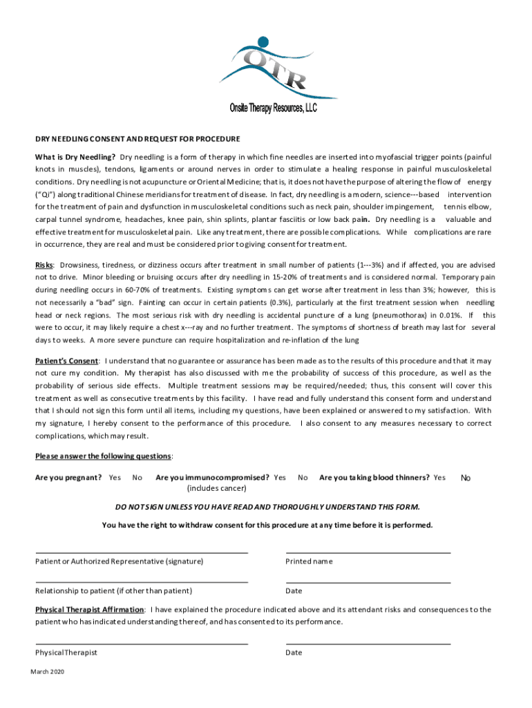 Get the free 00 Dry Needling - Consent form for Patients - heather's version.docx