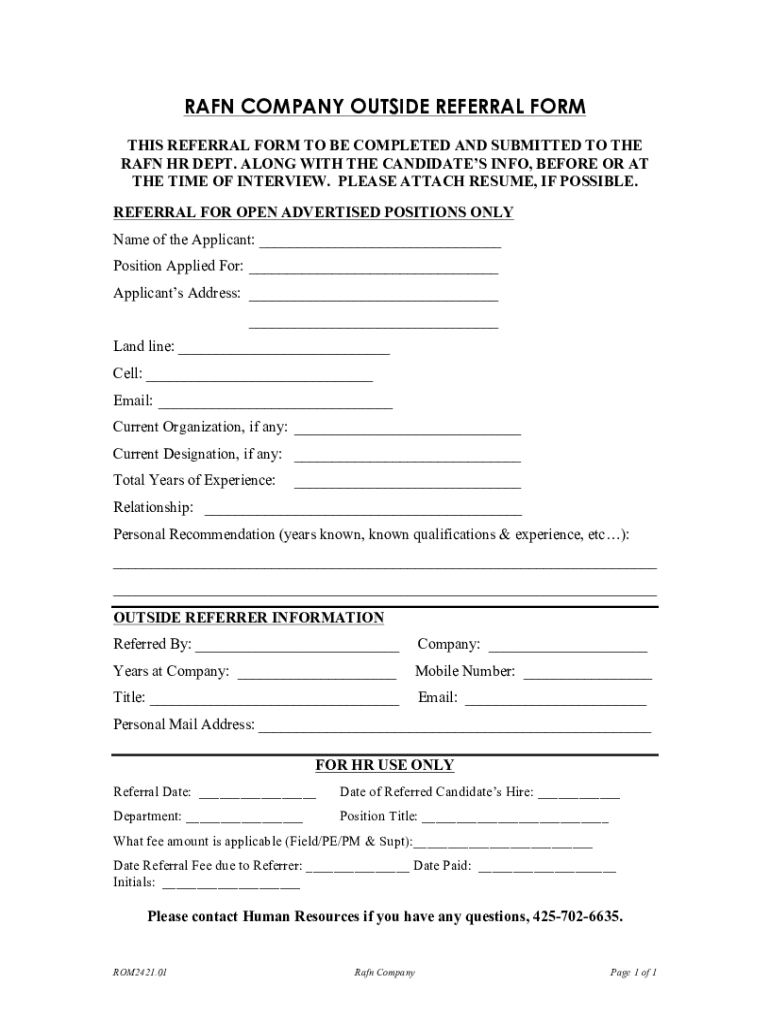 Fill out your rafn company outside referral online with pdfFiller!