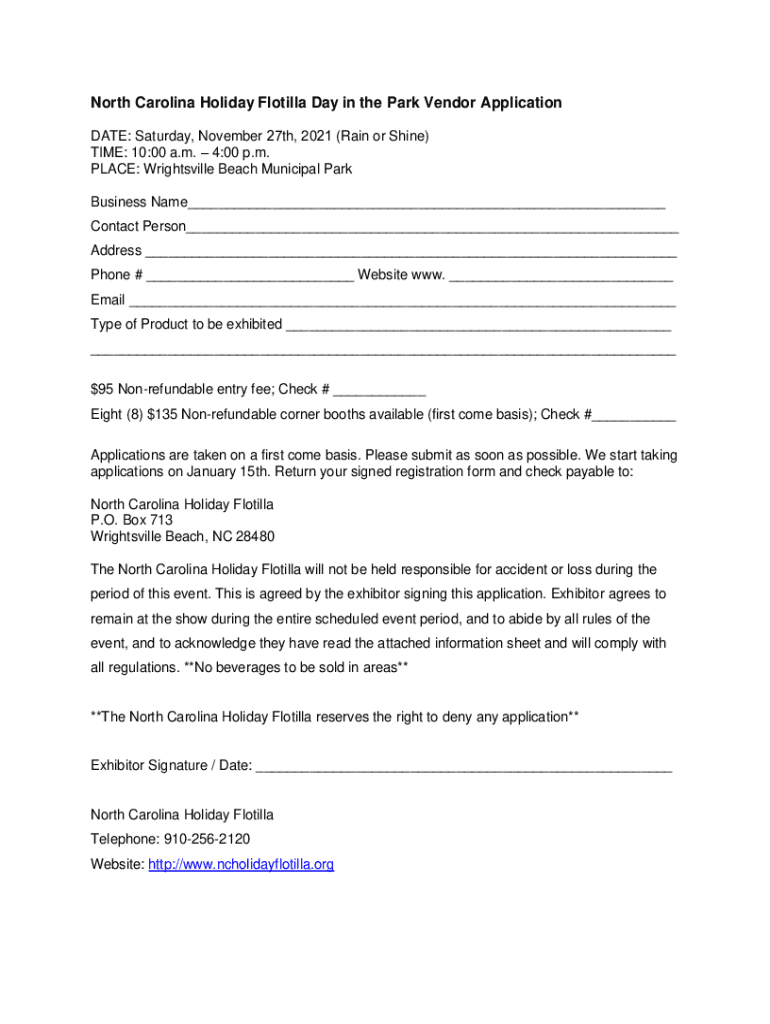 Get the free North Carolina Holiday Flotilla Day in the Park Vendor Application