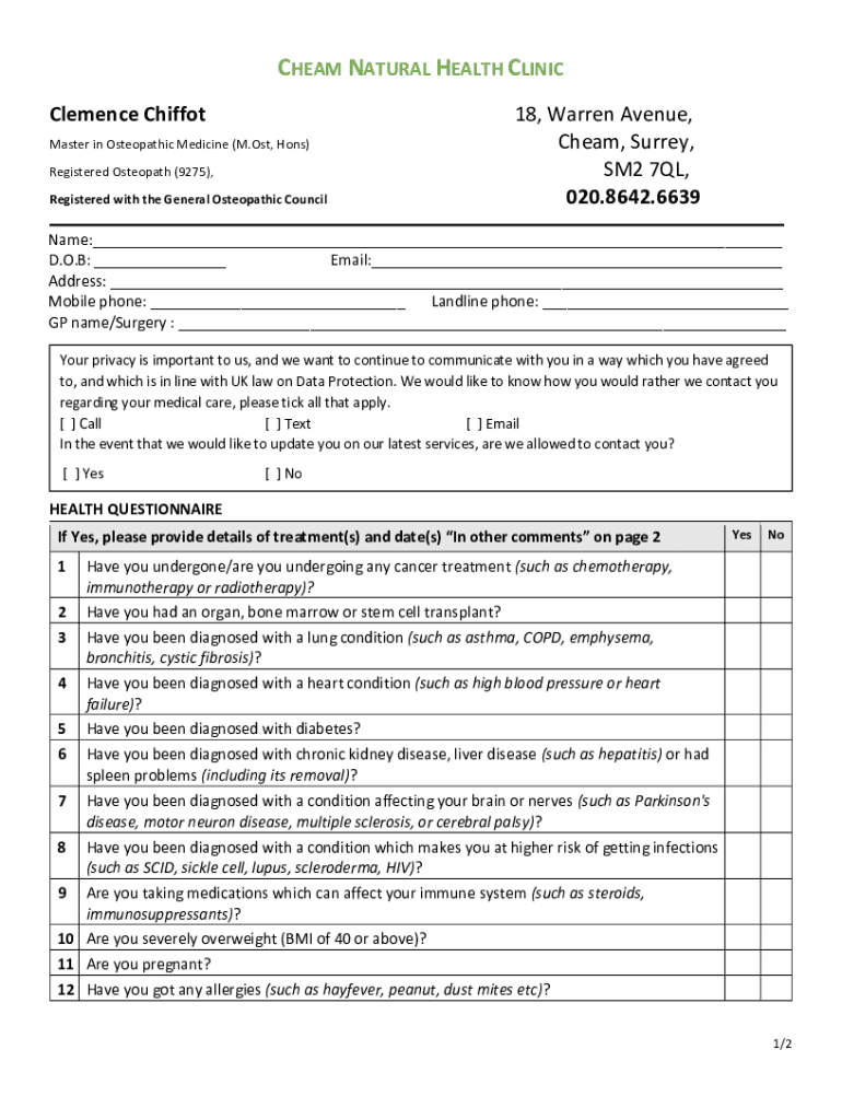 Get the free NP form- Cheam Natural Health Clinic
