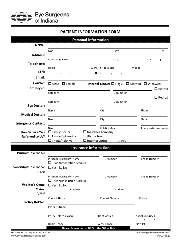 PATIENT INFORMATION FORM Personal Information Name: LastFirstMIAddress: Telephone:Street or PO Box City ST Zip Homework If Applicable Mobile SSN: DOB: / / Email: Gender: Male Female Marital Status: