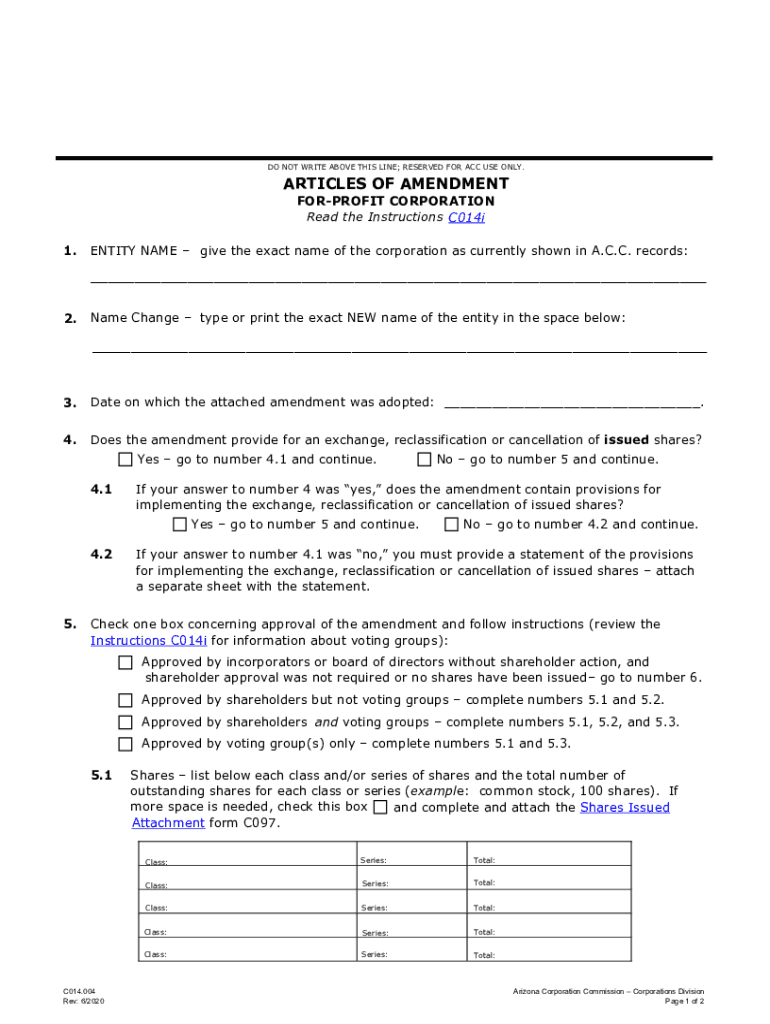 Get the free Form C014.001 - Articles Of Amendment For-Profit ...