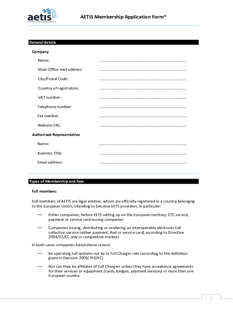 Get the free AETIS Membership Application Form* - aetis-europe.eu