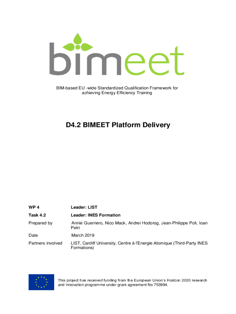 BIM based EU wide Standardized Qualification Framework for achieving Energy Efficiency TrainingD4.2 MEET Platform Delivery WP 4Leader: Lists 4.2Leader: INES FormationPrepared by Annie Guerrero, Nico