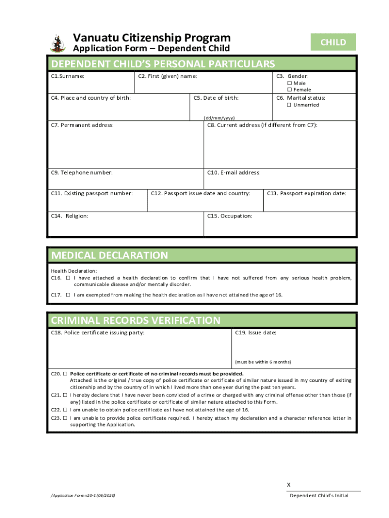 Get the free Vanuatu Citizenship Program CHILD Application Form ...