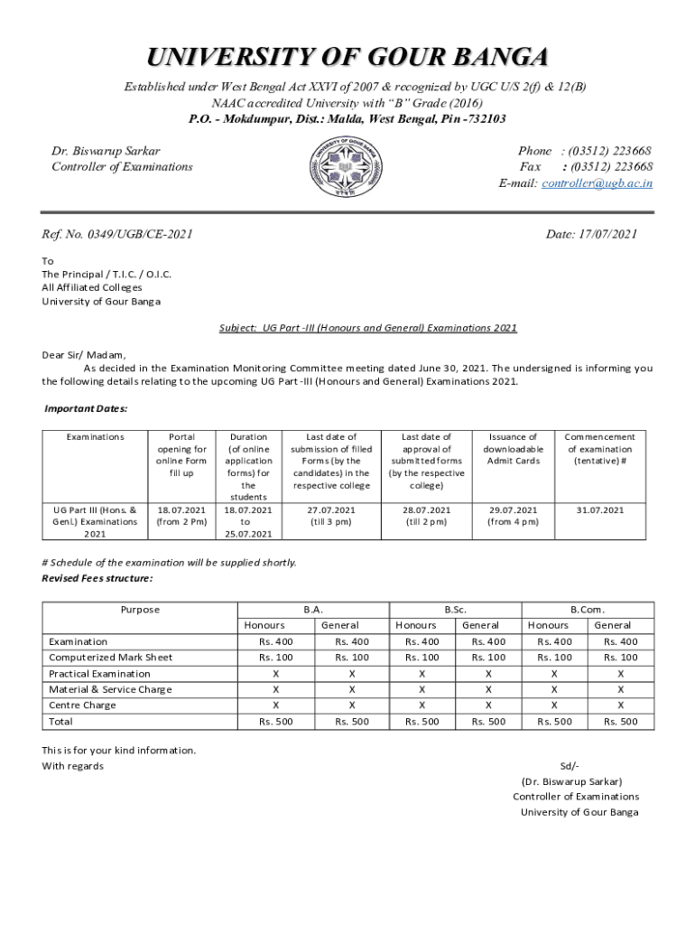 Get the free Notification for opening online portal for submission of examination forms for UG Pa...
