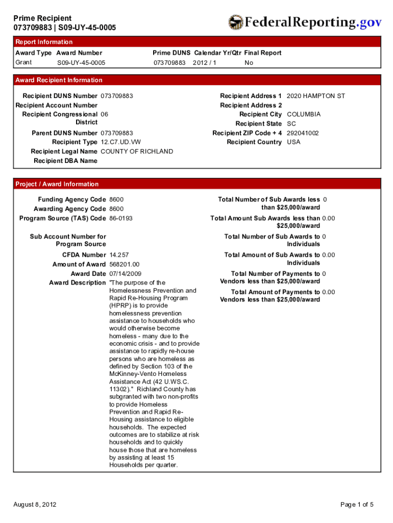 Prime Recipient 073709883 S09UY450005 Report Information Award Type Award Number Grant S09UY450005Prime DUNS Calendar Yr/MTR Final Report 073709883 2012 / 1 Award Recipient Information Recipient DUNS