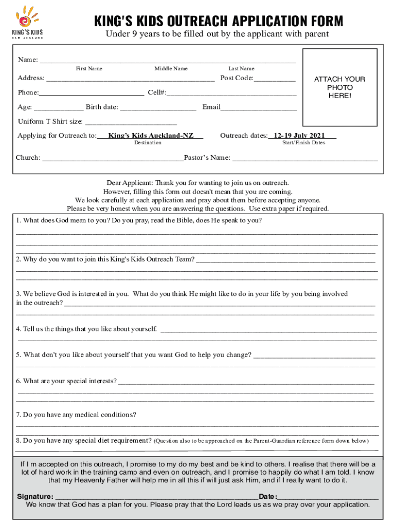 Under 9 years to be filled out by the applicant with parentage: First NameMiddle Nameless Headdress: Post Code: Phone:ATTACH YOU PHOTO HERE! Cell#: Age: Birth date: Email Uniform Shirt size: Applying