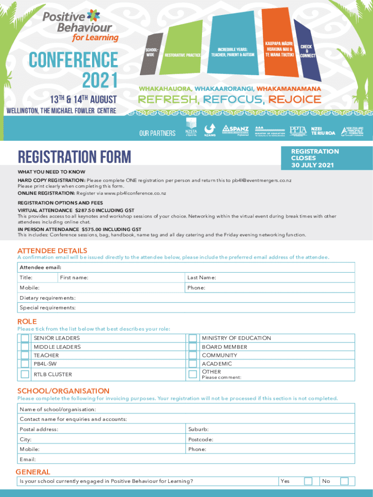 Conference 2021 13TH & 14TH August Wellington, the Michael Fowler Center OUR PARTNERS REGISTRATION CLOSES 30 JULY 2021Registration form WHAT YOU NEED TO BLOWHARD COPY REGISTRATION: Please complete