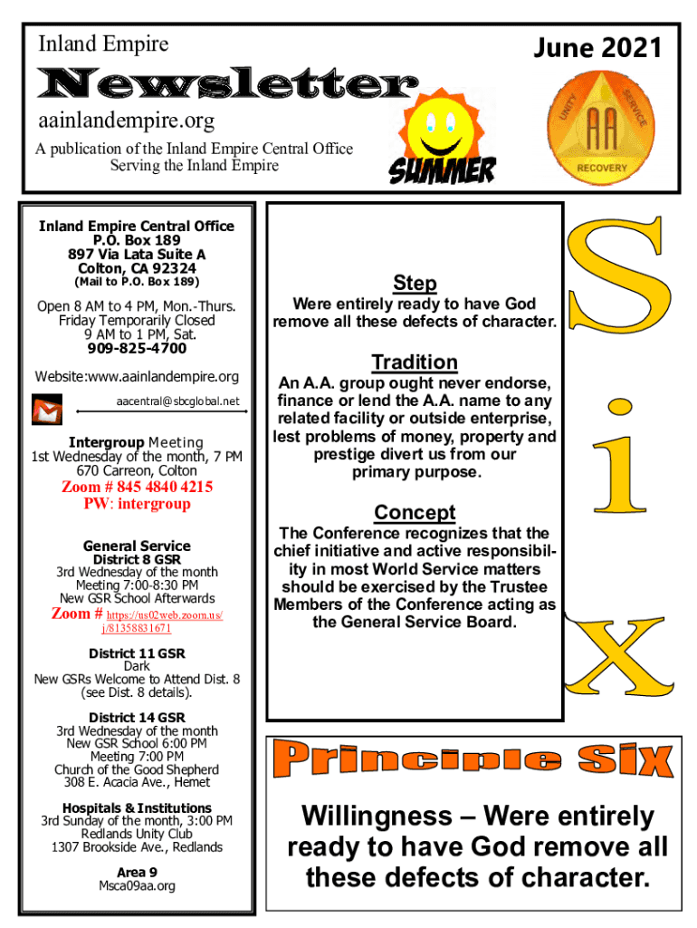 Inland EmpireNewsletterJune 2021aainlandempire.org A publication of the Inland Empire Central Office Serving the Inland EmpireInland Empire Central Office P.O. Box 189 897 Via Late Suite A Colton,