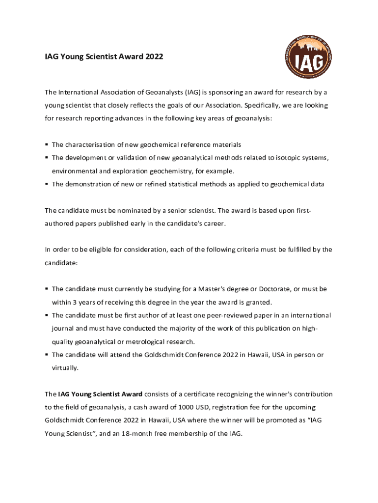 Get the free IAG Young Scientist Award Nomination Form 2022