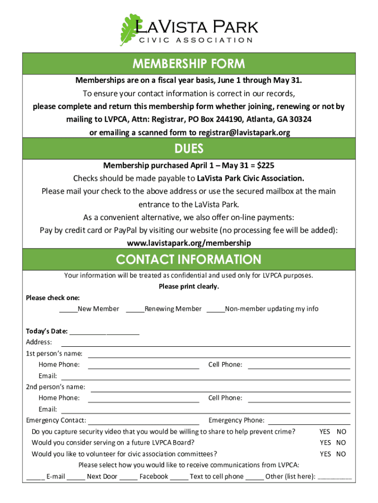 MEMBERSHIP FORM Memberships are on a fiscal year basis, June 1 through May 31. To ensure your contact information is correct in our records, please complete and return this membership form whether